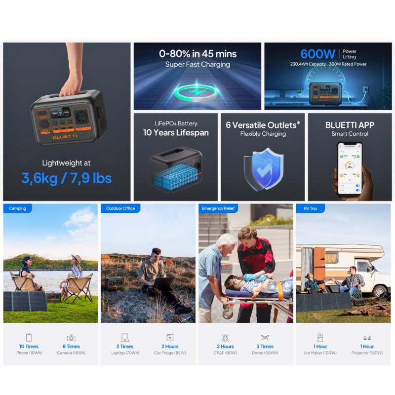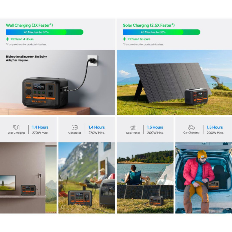 Complete off-grid power kit with Bluetti AC50P (504 Wh, 700 W) and PV200 foldable solar panel (200 W). Reliable, portable and eco-friendly for camping, backup and outdoor use.