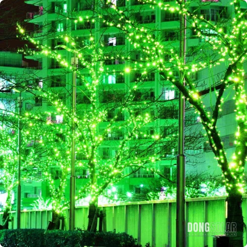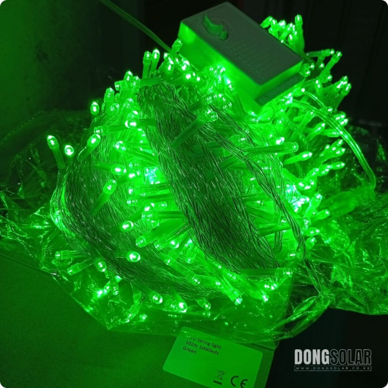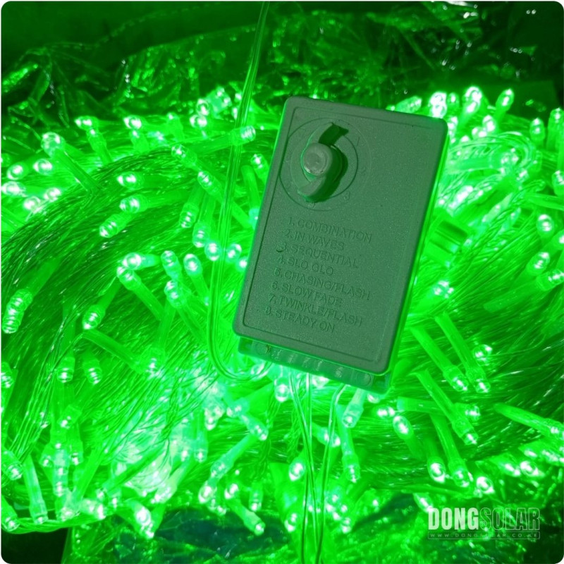Extra-long 102 m string with 1,000 GREEN LEDs. Features 8 lighting modes (waves, fade, twinkle, steady, etc.) and memory function. Perfect for events or cozy home décor.